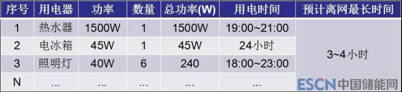 其中離網(wǎng)時(shí)的用電總功率和離網(wǎng)預(yù)計(jì)時(shí)間是最關(guān)鍵的參數(shù)。以停電預(yù)計(jì)的最長(zhǎng)時(shí)間4小時(shí)來(lái)計(jì)算,其設(shè)計(jì)思路可參考: