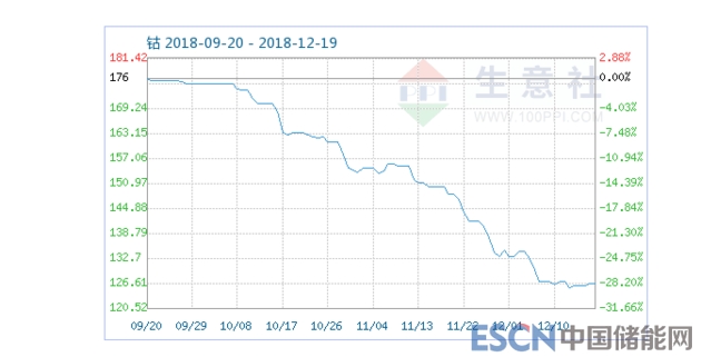 其中,鈷的走勢又較為引發(fā)關(guān)注。從今年5月開始,鈷類產(chǎn)品的價格就開始緩慢下跌,自從10月中旬起,跌幅迅速擴大。