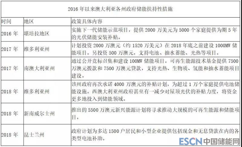顯然,這不是一個僅靠南澳州一地之力就能夠實現(xiàn)的目標。事實上除了南澳州之外,澳大利亞其他各州地方政府都在儲能領域大力跟進。首都堪培拉、維多利亞州、西澳洲和新南威爾士州在2016年以來都有相應的政策跟進。