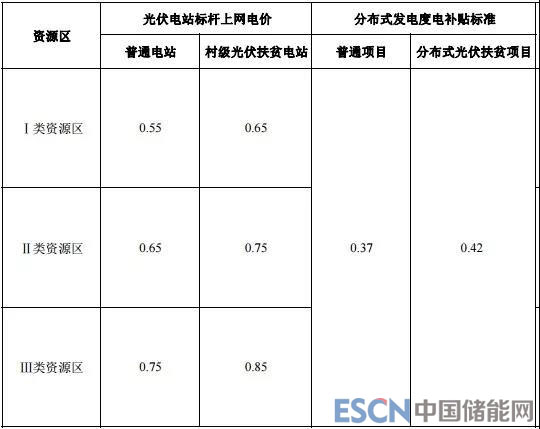 當前,我國光伏標桿上網(wǎng)電價如下表: