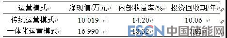 表1傳統(tǒng)運(yùn)營模式和一體化運(yùn)營模式的成本收益