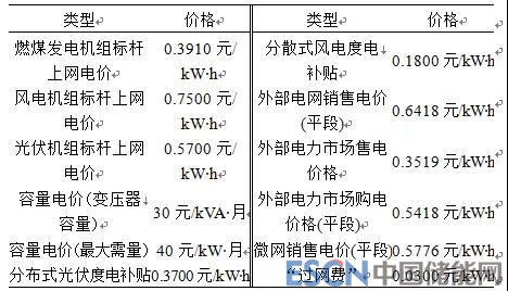 未參與電力市場前,微網(wǎng)內(nèi)部分布式能源上網(wǎng)電量以當(dāng)?shù)厝济喊l(fā)電機(jī)組標(biāo)桿上網(wǎng)電價結(jié)算,外購電量以目錄銷售電價(考慮峰谷分時)結(jié)算。