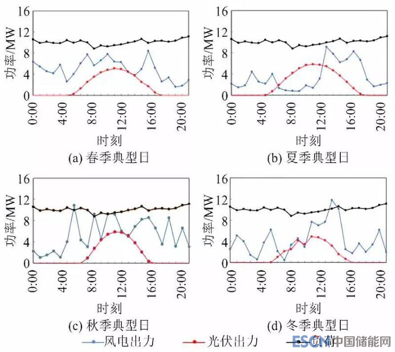 圖8為四季典型日微網(wǎng)風(fēng)光出力和負(fù)荷曲線。