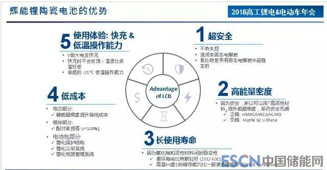 他圍繞“固態(tài)電解質(zhì)比較”、“全球固態(tài)電池發(fā)展現(xiàn)況”,“輝能核心技術(shù)”、“輝能鋰陶瓷電池的優(yōu)勢”,以及“輝能創(chuàng)新的類Qualcomm商業(yè)模式”展開。