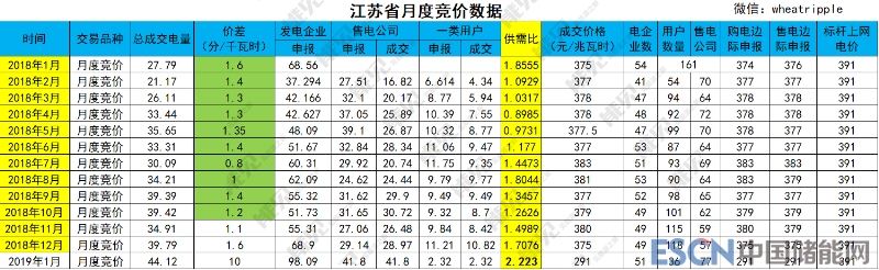 中國(guó)儲(chǔ)能網(wǎng)訊:據(jù)悉,江蘇電力交易中心12月25日公布2019年1月份月度集中競(jìng)價(jià)結(jié)果,相較于2018年1.5分/千瓦時(shí)的月度價(jià)差和2019年2.18分/千瓦時(shí)的年度雙邊交易價(jià)差,本次成交價(jià)格較標(biāo)桿電價(jià)下降破紀(jì)錄的0.1元/千瓦時(shí)。
