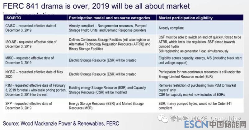 本月內各大電網運營商將陸續(xù)向FERC最終提交841號令合規(guī)計劃,目前我們也可從整體宏觀角度窺探每家的實施和發(fā)展計劃。雖然美國儲能聯(lián)盟(ESA)確實對這些最終計劃表示不滿,表明未來對此還有更多的爭論,但2018年開放的841號令強制執(zhí)行帶來的市場變化卻有望為批發(fā)電力與輔助服務市場提供大量新的發(fā)展機會。