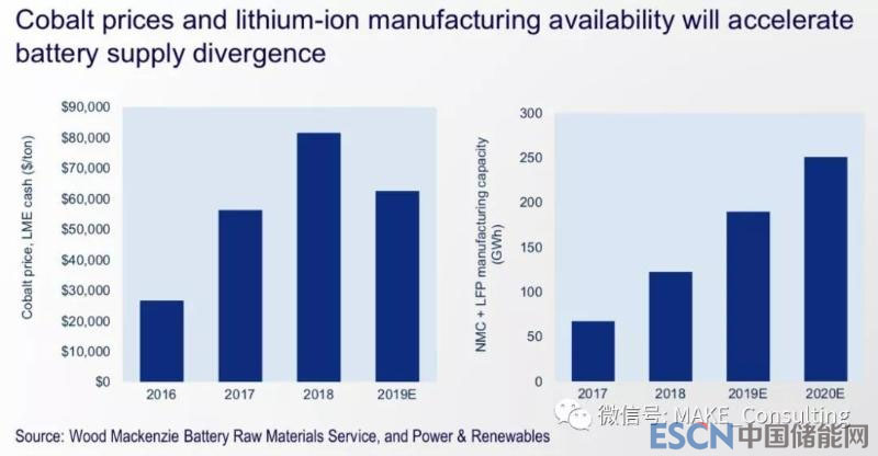 Manghani的第四個預測集中在2018年行業(yè)發(fā)展阻力之一——供應鏈短缺。該狀況阻礙了工商業(yè)用戶側儲能項目的發(fā)展,而短暫性產能瓶頸和鈷價格全球性上漲是這一現(xiàn)象背后的兩大原因。鈷是許多高能量密度鋰電池化學原料之一,如鎳鈷錳三元鋰電池(NMC)和鎳鈷鋁三元鋰電池(NCA)。