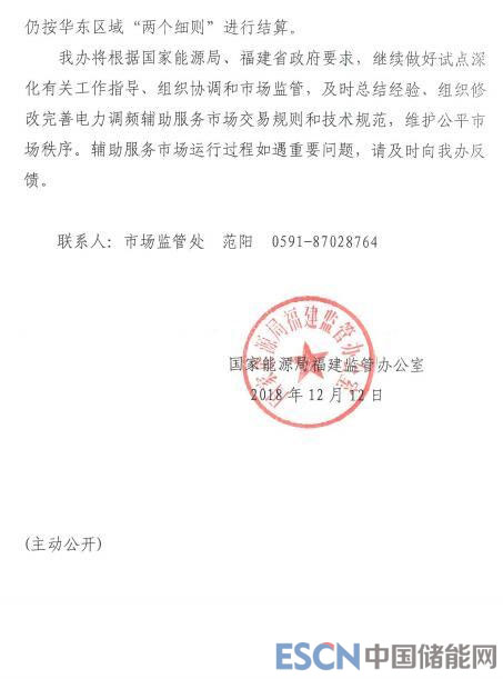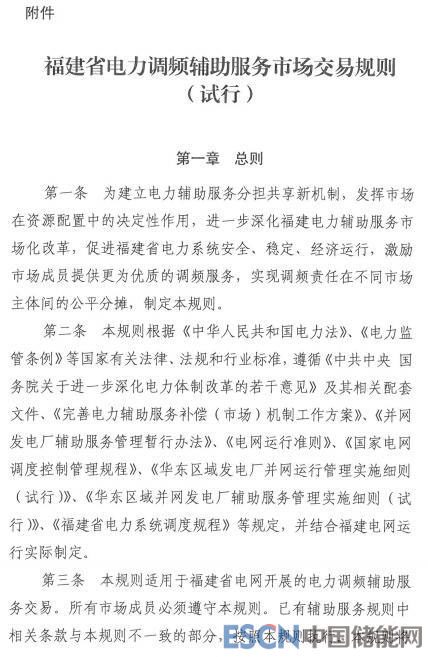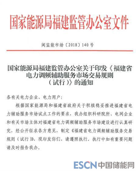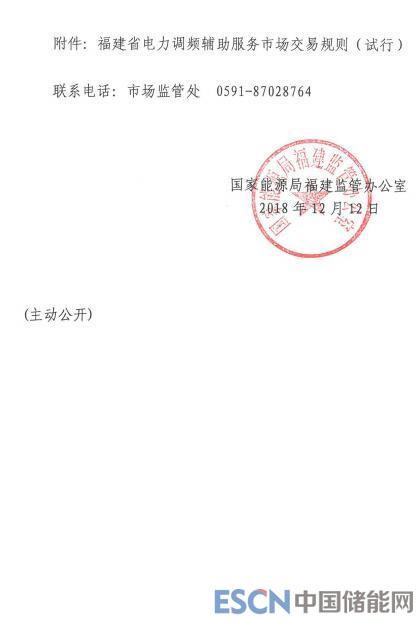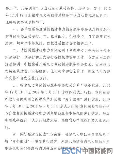 福建能監(jiān)辦日前發(fā)布了《關于福建省電力調(diào)頻輔助服務市場啟動運行有關工作的通知(閩監(jiān)能市場〔2018〕139號)》、關于印發(fā)《福建省電力調(diào)頻輔助服務市場交易規(guī)則(試行)》的通知(閩監(jiān)能市場〔2018〕140號),定于2018年12月18日起福建電力調(diào)頻輔助服務市場啟動模擬測試運行。2018年12月18日至2019年3月17日為模擬測試運行,期間調(diào)頻補償與分攤費用仍按原有華東區(qū)域“兩個細則”進行結算;2019年3月18日至2019年9月17日為試運行期,期間調(diào)頻市場補償與分攤費用按福建省電力調(diào)頻輔助服務市場規(guī)則進行結算,結算費用減半執(zhí)行;試運行期結束后,根據(jù)實際情況擇機轉入正式運行。