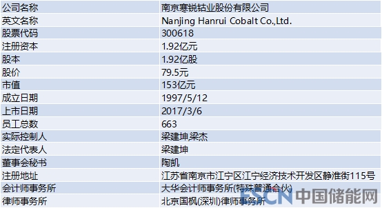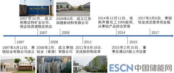 寒銳鈷業(yè)成立于1997年,2011年改制為股份有限公司,2017年登陸創(chuàng)業(yè)板。公司經(jīng)過(guò)二十年的跨越式發(fā)展,如今成長(zhǎng)為擁有三家實(shí)業(yè)公司、兩家國(guó)際貿(mào)易公司等10家子公司的跨國(guó)企業(yè)集團(tuán)。寒銳鈷業(yè)旗下的南京寒銳、剛果邁特、江蘇潤(rùn)捷構(gòu)成了寒銳鈷業(yè)的生產(chǎn)主體,香港寒銳和齊傲化工構(gòu)成了寒銳鈷業(yè)的貿(mào)易主體。