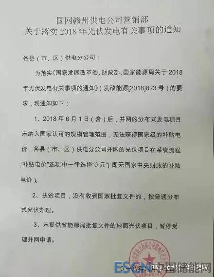 ◆2018年6月13日,國網(wǎng)贛州供電公司營銷部發(fā)布《關(guān)于落實2018年光伏發(fā)電有關(guān)事項的通知》。《通知》明確,2018年6月1日(含)后,并網(wǎng)的分布式發(fā)電項目未納入國家認可的規(guī)模管理范圍,無法獲得國家級的補貼電價,各縣(市、區(qū))供電分公司并網(wǎng)的光伏項目在系統(tǒng)流程“補貼電價”選項中一律選擇“0元”(即無國家中央財政的補貼電價)