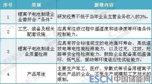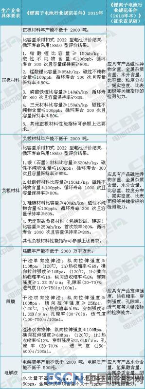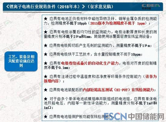 據(jù)悉,較2015年的《鋰離子電池行業(yè)規(guī)范條件》,《鋰離子電池行業(yè)規(guī)范條件(2018年本)》(征求意見稿)還有如下變化: