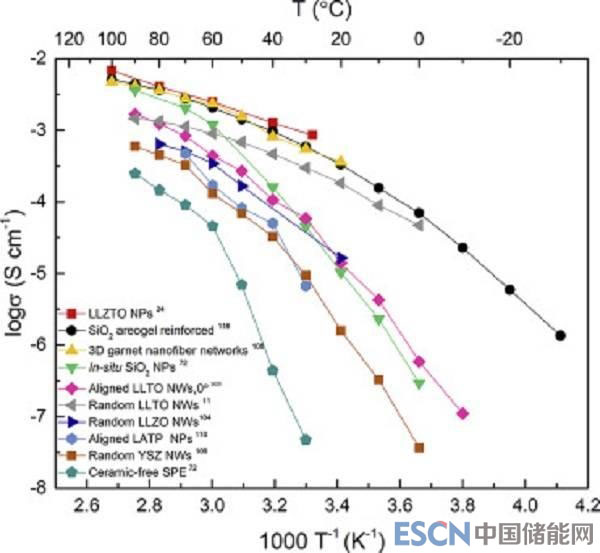 圖九、近期報(bào)道的CSEs離子電導(dǎo)率的比較