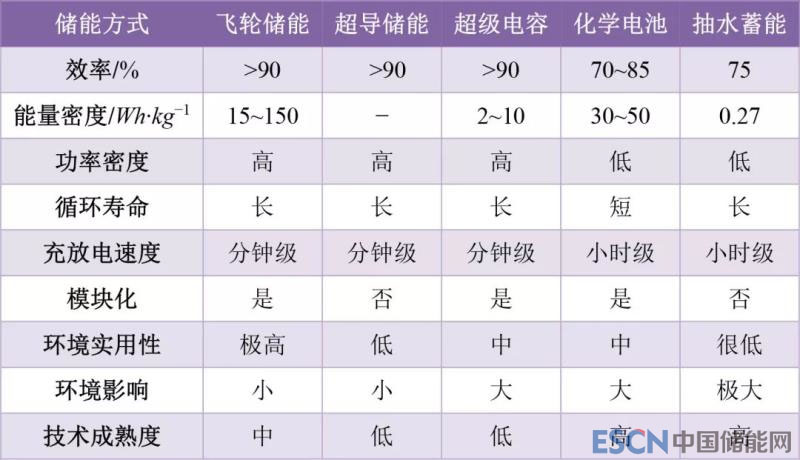 表1各儲能方式性能比較