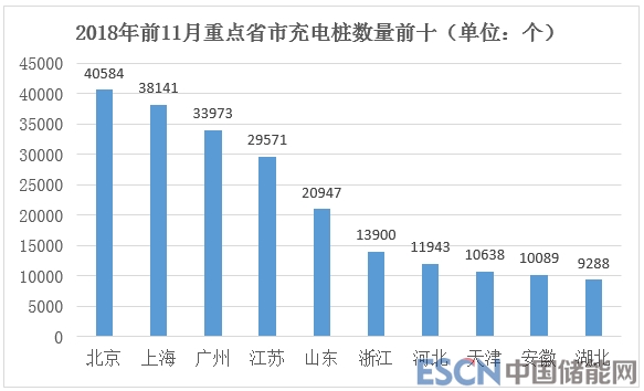 根據(jù)充電聯(lián)盟數(shù)據(jù)顯示,截至2018年11月,分省市來看,省級(jí)行政區(qū)域內(nèi)所擁有的公共類充電樁數(shù)量前十的分別為北京、上海、廣東、江蘇、山東、浙江、河北、天津、安徽、湖北。公共充電基礎(chǔ)設(shè)施建設(shè)區(qū)域較為集中,北京、上海、廣東等加速發(fā)展地區(qū)建設(shè)的公共充電基礎(chǔ)設(shè)施占比達(dá)77%;示范推廣地區(qū)和積極促進(jìn)地區(qū)共占23%。