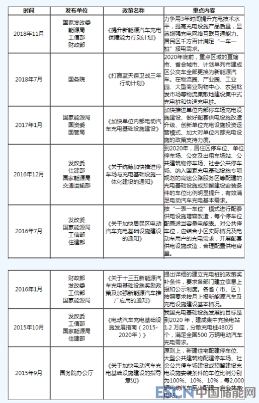 國家層面關(guān)于充電設(shè)施建設(shè)政策匯總一覽表