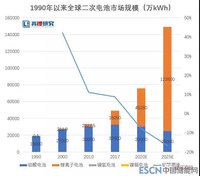 與鉛酸電池、鎳氫電池、鎳鎘電池等其他二次電池(充電電池)相比,鋰離子電池問世的時(shí)間最晚,全球第一只鋰離子電池是索尼公司1990年推向市場的。因?yàn)槟芰棵芏雀?,使用相?duì)安全,沒有記憶效應(yīng)(性能全面占優(yōu)),而且環(huán)保(不含鉛、鎘、汞等對(duì)環(huán)境有污染的元素),自問世以來鋰離子電池發(fā)展迅猛,市場規(guī)模飛速擴(kuò)大,未來幾年將確定超越鉛酸電池而成為用量最大的二次電池產(chǎn)品。