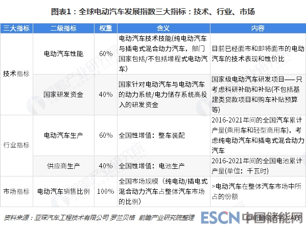 羅蘭貝格和亞琛汽車工程技術(shù)有限公司通過(guò)建立“全球電動(dòng)汽車發(fā)展指數(shù)”比較不同國(guó)家的競(jìng)爭(zhēng)態(tài)勢(shì),其研究的全球電動(dòng)汽車發(fā)展指數(shù)包括三個(gè)維度:第一,技術(shù),即本土整車廠生產(chǎn)的汽車的技術(shù)發(fā)展現(xiàn)狀,以及全國(guó)性新能源汽車補(bǔ)貼項(xiàng)目對(duì)汽車發(fā)展的支持;第二,行業(yè),即汽車行業(yè)中,由全國(guó)的車輛、系統(tǒng)和零件的生產(chǎn)所創(chuàng)造的區(qū)域性價(jià)值;第三,市場(chǎng),即根據(jù)現(xiàn)有客戶需求計(jì)算的全國(guó)電動(dòng)汽車市場(chǎng)規(guī)模;具體衡量如下: