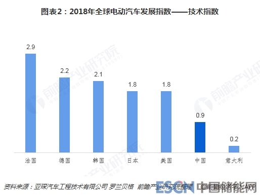 從2018年全球電動(dòng)汽車發(fā)展指數(shù)的技術(shù)維度看,排名前三的國(guó)家為法國(guó)、德國(guó)和韓國(guó);中國(guó)排名第六。