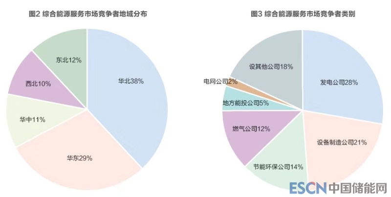其中華北和華東地區(qū)共占66%,是競(jìng)爭(zhēng)最激烈的區(qū)域,主要競(jìng)爭(zhēng)者類(lèi)包括清潔能源發(fā)電公司、設(shè)備制造公司、節(jié)能環(huán)保公司、燃?xì)夤镜取?