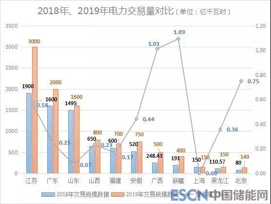 2019年的交易規(guī)模也在近期陸續(xù)公布于眾,截至目前,全國已經(jīng)有十多個(gè)省市公布了2019年電力交易規(guī)模,較2018年各省市電力交易規(guī)模有了大幅提升。