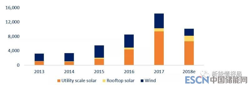 中國儲能網(wǎng)訊:根據(jù)Bridge to India發(fā)布的數(shù)據(jù),2018年印度公用事業(yè)光伏裝機下降了29%,但是屋頂光伏裝機增長了73%。