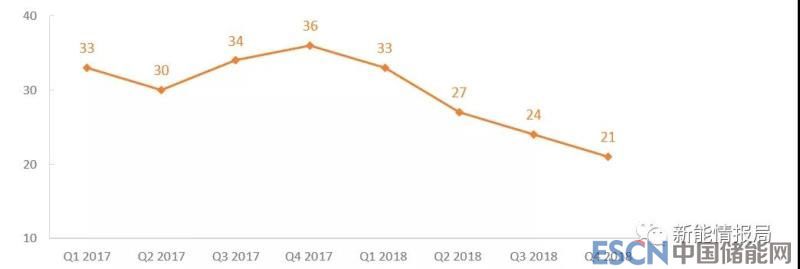 光伏組件價格在2018年出現(xiàn)了大幅下跌,從年初到0.33美元/瓦降到了年底的0.21美元/瓦。