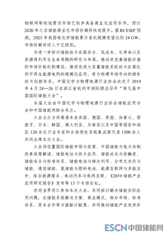 為進(jìn)一步探討儲(chǔ)能技術(shù)在高安全、低成本、長壽命以及資源再利用全生命周期的研究與布局,推動(dòng)并完善儲(chǔ)能價(jià)值的市場(chǎng)價(jià)格機(jī)制建設(shè),推進(jìn)先進(jìn)大容量?jī)?chǔ)能系統(tǒng)技術(shù)在高比例可再生能源電網(wǎng)的規(guī)?;瘧?yīng)用,有力構(gòu)建市場(chǎng)導(dǎo)向的綠色技術(shù)創(chuàng)新體系,中國化學(xué)與物理電源行業(yè)協(xié)會(huì)決定于2019年4月24—26日在浙江省杭州市洲際酒店召開“第九屆中國國際儲(chǔ)能大會(huì)”。
