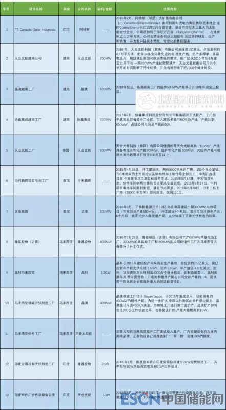光伏企業(yè)布局亞洲的電池及組件廠