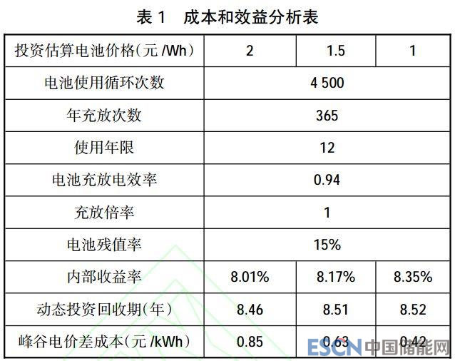 從表1分析,隨著電池成本的進(jìn)一步降低將會(huì)有良好的經(jīng)濟(jì)和社會(huì)投資價(jià)值。