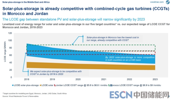 報(bào)告指出,“對(duì)于像摩洛哥和約旦這樣的天然氣貧乏的國(guó)家,太陽(yáng)能+儲(chǔ)能項(xiàng)目將受到減少對(duì)昂貴的天然氣進(jìn)口依賴(lài)需求的推動(dòng)?!?