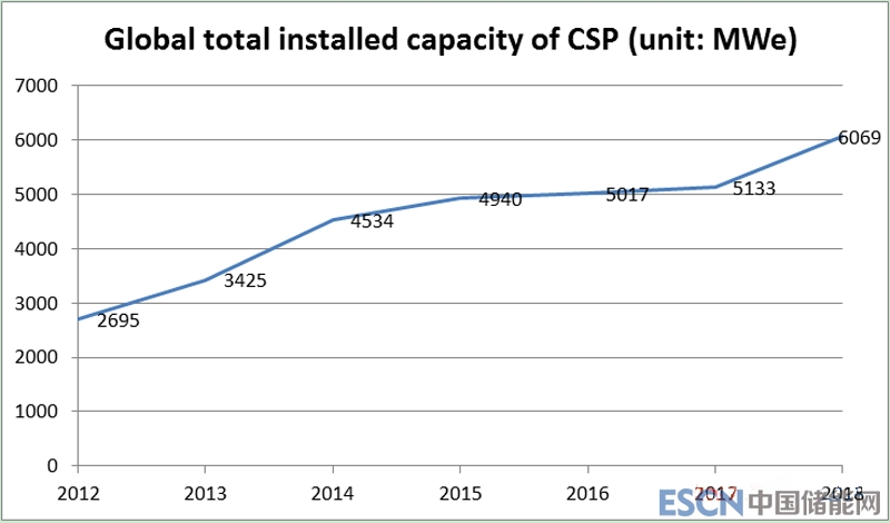 圖:CSPPLAZA統(tǒng)計(jì)的全球已建成光熱裝機(jī)量(2012-2018)