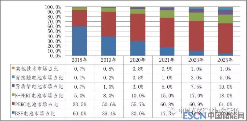 2018-2025年全片、半片和疊瓦電池組件市場(chǎng)占比變化趨勢(shì)