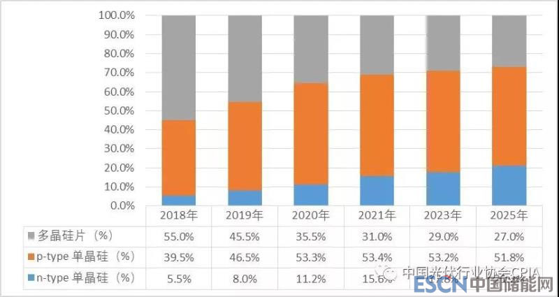 2018-2025年全國(guó)不同類型硅片市場(chǎng)占比變化趨勢(shì)