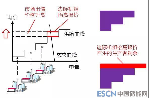 在電力系統(tǒng)無阻塞的條件下,發(fā)電機組按照報價由低到高依次出清,最后一臺出清的發(fā)電機組即邊際機組,邊際機組的報價即市場出清的邊際價格??梢?,如果邊際機組真實報價,則其凈收益為零。因此,邊際價格機制對邊際機組的支付補償不充分,本質上沒有辨識邊際機組創(chuàng)造的價值,并按照價值進行效益分配。如果邊際機組適當虛報高價,則將抬高邊際價格,帶動所有機組的生產(chǎn)者剩余提升,導致市場效率損失。