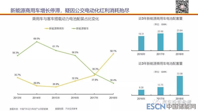 如《汽車投資參考》在1月20日的文章《2013-2018年新能源汽車銷量與動(dòng)力電池裝機(jī)量數(shù)據(jù)》中顯示的那樣,2018年新能源整車銷量大漲61.5%,一舉突破100萬(wàn)輛,達(dá)125.6萬(wàn)輛。但其增量完全來(lái)自于新能源乘用車,新能源商用車,尤其是新能源客車的銷售陷入停滯。反映在動(dòng)力電池裝機(jī)量上,則是商用車電池配套量?jī)H增加約5%,不足1.2GWh。