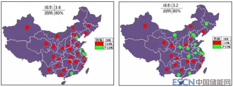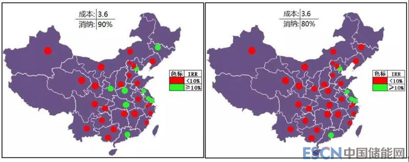80%自用比例下有12個的城市(地區(qū))滿足收益率要求:蒙西、蒙東、冀北、鄭州、濟寧、長春、連云港、蘇州、上海、深圳。