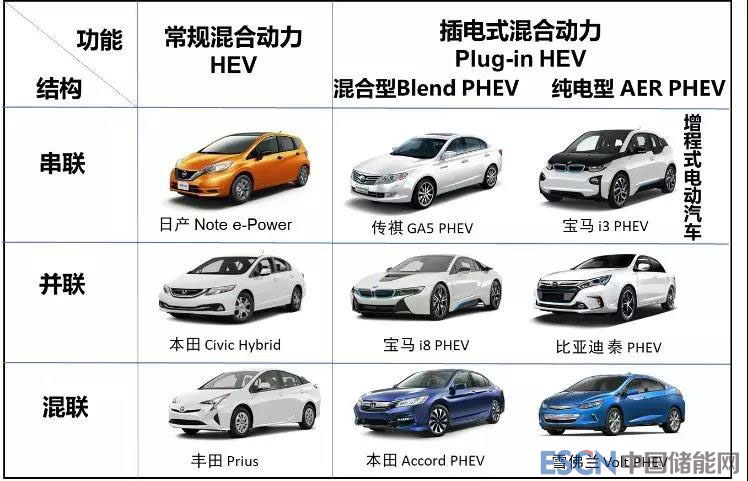 圖2 多種類型的混合動力汽車