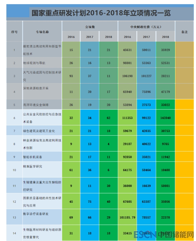 據(jù)動源君初步統(tǒng)計,截至目前,國務(wù)院批準(zhǔn)實施的國家重點研發(fā)計劃重點專項為68個(財政部數(shù)據(jù)),自2016年起已啟動實施65個(國際合作專項除外)。其中,“十三五”大部分任務(wù)完成部署實施,立項項目達(dá)3500多項,中央財政經(jīng)費投入超過760億元,數(shù)萬家單位參與,項目牽頭申報單位基本覆蓋全國所有的省、直轄市和自治區(qū)。動源君以國科管系統(tǒng)公示的數(shù)據(jù)為統(tǒng)計基礎(chǔ),梳理發(fā)現(xiàn),2016年啟動專項42個,項目數(shù)1193個,經(jīng)費數(shù)2977176萬元(不含部分定向擇優(yōu)的經(jīng)費);2017年新啟動6個重點專項,包括變革性技術(shù)關(guān)鍵科學(xué)問題、食品安全關(guān)鍵技術(shù)研發(fā)、中醫(yī)藥現(xiàn)代化、重大自然災(zāi)害監(jiān)測預(yù)警與防范、智能機(jī)器人、現(xiàn)代服務(wù)業(yè)共性關(guān)鍵技術(shù)研發(fā)及應(yīng)用,項目數(shù)1279個,經(jīng)費數(shù)2553676萬元;2018年新啟動17個專項,包括場地污染成因與治理技術(shù)、主動健康和老齡化科技應(yīng)對、科技冬奧等,經(jīng)費數(shù)2018941萬元。下一步動源君還將以省份、單位類型分布、地域分布、項目類型等進(jìn)行分類分析,僅各位銳粉參考。需要強(qiáng)調(diào)的是,以上分析只代表銳動源編輯部觀點,不代表官方口徑,如數(shù)據(jù)出現(xiàn)問題,歡迎指出。