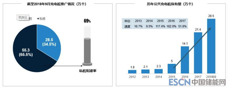 目前制約電動(dòng)汽車普及一個(gè)非常大的障礙就是充電問題,從充電聯(lián)盟了解到的數(shù)據(jù),充電模式的市場(chǎng)規(guī)模在快速發(fā)展,截至2018年9月,全國(guó)已累計(jì)推廣充電樁83.8萬個(gè),其中公共樁28.9萬個(gè),私充電樁55.3萬個(gè),私充電樁配建率達(dá)到69%。