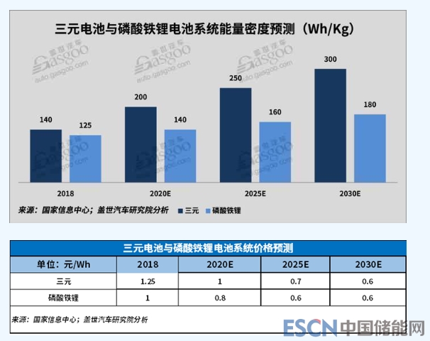 三元電池有望2020年系統(tǒng)能量密度接近200Wh/kg,2025年接近250Wh/kg;而磷酸鐵鋰系統(tǒng)能量密度已接近極限,但相對于三元材料具備價格優(yōu)勢。
