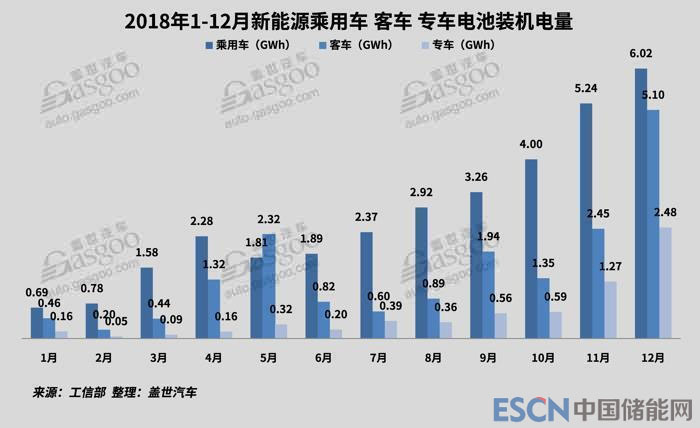 中國儲能網(wǎng)訊:2018年12月我國新能源汽車生產(chǎn)22.6萬輛,同比增長16.0%,環(huán)比增長17.7%。2018年全年新能源汽車生產(chǎn)122.1萬輛,同比大幅增長50.7%。其中新能源乘用車產(chǎn)量為99.4萬輛,同比增長80.7%。根據(jù)蓋世汽車研究院統(tǒng)計,2018年12月動力電池裝機量13.60 GWh,同比增長15.4%。2018年全年動力電池裝機量為57.35GWh,同比增長57.0%,其中新能源乘用車裝機量達(dá)到32.86GWh,占總裝機量的57.3%,同比增長137.0%,成為動力電池的主要需求增長點。