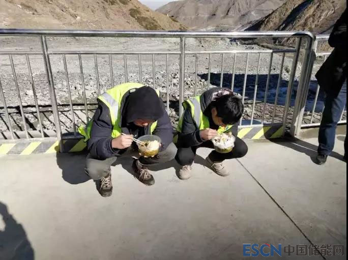 電站施工區(qū)域較大,上水庫(kù)距離營(yíng)地有15公里的上山路,往返一趟僅在路上耗費(fèi)的時(shí)間就要一小時(shí)。施工期間項(xiàng)目組成員為了節(jié)省時(shí)間,每天出門都要把一整天的干糧背在身上,在施工現(xiàn)場(chǎng)捧著飯盒隨便找個(gè)角落一蹲,一頓飯就解決了。