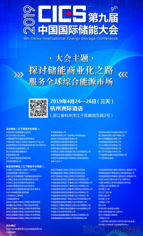 中國儲能網(wǎng)訊:經(jīng)中國國際儲能大會組委會確認(rèn),廣州智光儲能科技有限公司(以下簡稱“智光儲能”)決定聯(lián)合主辦2019年第九屆中國國際儲能大會 (大會簡稱“CIES2019”),本次大會主題為“探討儲能商業(yè)化之路,服務(wù)全球綜合能源市場”,將于4月24-26日在杭州洲際酒店隆重召開。