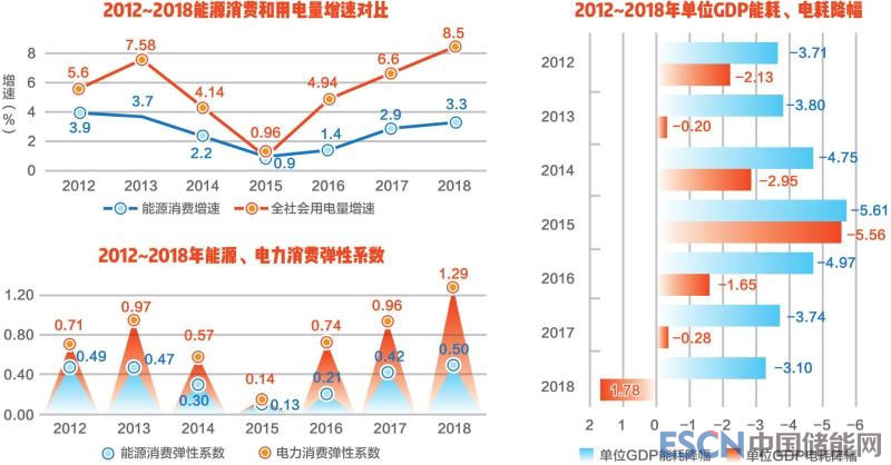 近日,國家統(tǒng)計局、國家能源局等相繼發(fā)布數(shù)據(jù)顯示,2018年我國國內(nèi)生產(chǎn)總值比上年增長6.6%,能源消耗同比增長3.3%,用電同比增長8.5%。由此可得,2018年我國單位產(chǎn)值能耗下降3.1%,單位產(chǎn)值電耗增長1.8%。