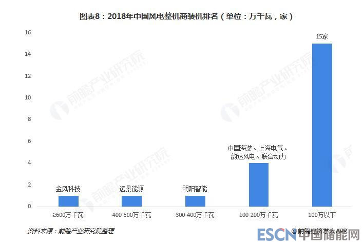 截止2019年1月20日,中國風能協會統(tǒng)計了22家風機制造商所提交的數據,整理出2018年中國風電整機商裝機排名,其中金風科技不出意外的排名首位。