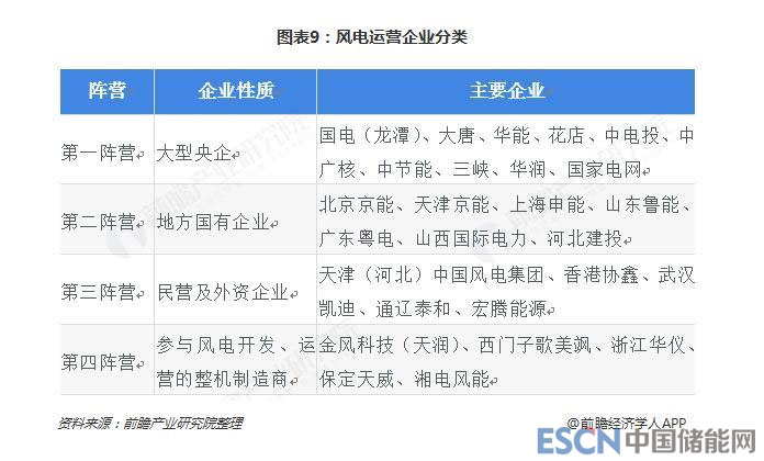 在風電運營領域,根據企業(yè)性質,中國風電開發(fā)、運營企業(yè)可以大致分為四類:大型央企、地方國有企業(yè)、民營及外資企業(yè)、參與風電場開發(fā)的整機制造商。