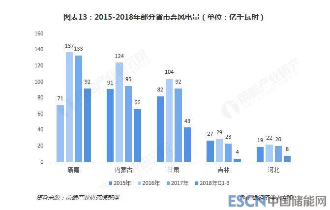 我國國的棄風問題存在已久,2009年,風電并網比例最高的內蒙古自治區(qū)發(fā)生了較大規(guī)模的棄風電,2010年這一趨勢在全國范圍內增強,2011年總共棄風電100億度,三北地區(qū)平均棄風比例高達16%。2017年我國限電棄風最為嚴重的地區(qū)包括新疆、內蒙古、甘肅、吉林、河北、黑龍江等11個省市,其中新疆棄風量132.5億千瓦時,棄風率29%,是國內棄風率最高的地區(qū)。