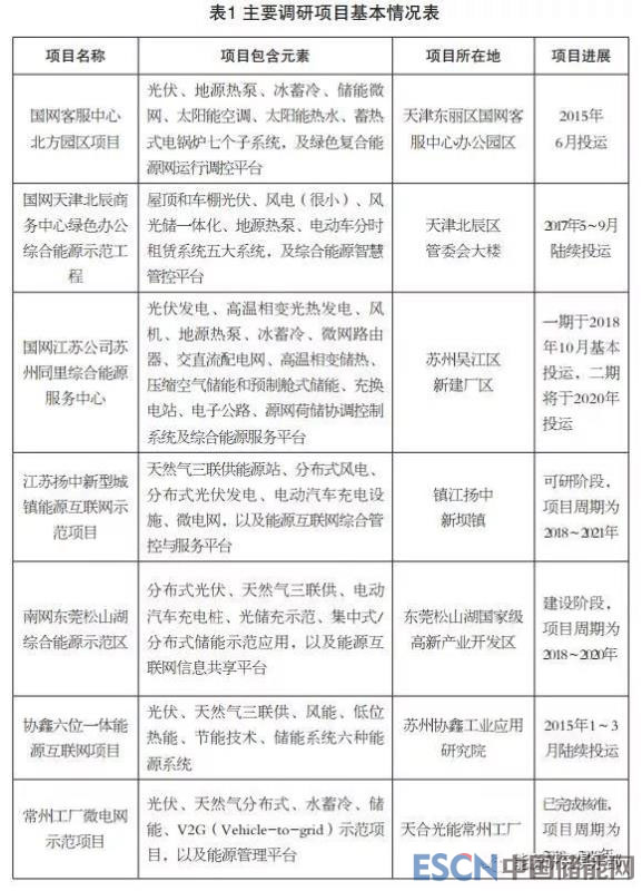 筆者重點(diǎn)調(diào)研了天津、江蘇、廣東地區(qū)開展綜合能源服務(wù)的五家企業(yè),涉及近十個(gè)綜合能源服務(wù)項(xiàng)目。從調(diào)研結(jié)果看,國網(wǎng)天津公司綜合能源服務(wù)推廣初顯成效,國網(wǎng)江蘇公司綜合能源服務(wù)進(jìn)展迅速,南網(wǎng)廣東公司正積極探索園區(qū)級(jí)示范項(xiàng)目,協(xié)鑫全面布局“源網(wǎng)售用云”均已落地,天合光能著力打造“發(fā)儲(chǔ)配用云”能源物聯(lián)網(wǎng),基本情況見表1。
