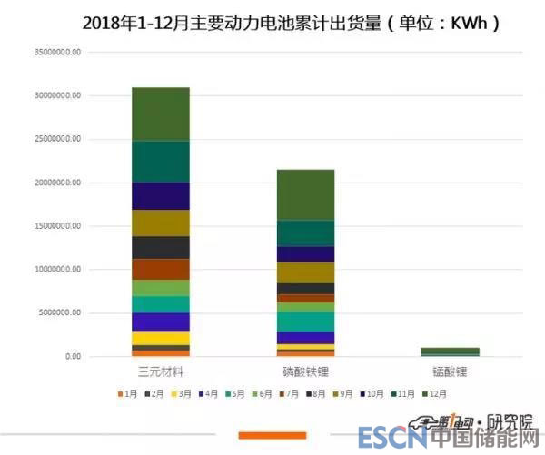 2018年累計來看,三元鋰電池累計實現(xiàn)裝機30.99GWh,磷酸鐵鋰電池累計裝機21.5GWh,在累計總裝機量中的比重分別為54.11%和37.54%。