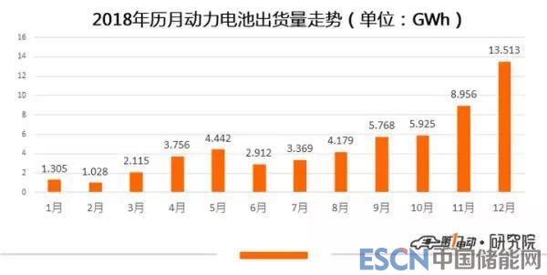 中國儲能網(wǎng)訊:數(shù)據(jù)顯示,2018年12月國內(nèi)新能源汽車產(chǎn)量22.6萬輛,環(huán)比上漲17.7%。根據(jù)第一電動研究院的統(tǒng)計測算,動力電池在12月裝機量為13.513GWh,環(huán)比大漲50.9%,同比上漲15%。2018年累計裝機量為57.3GWh,累計同比增長57.6%。